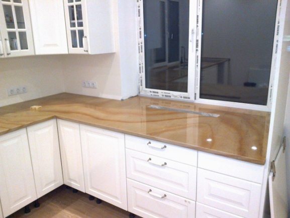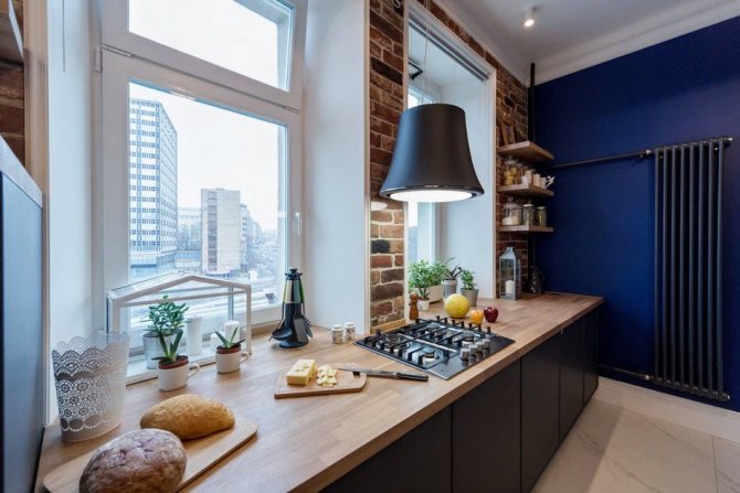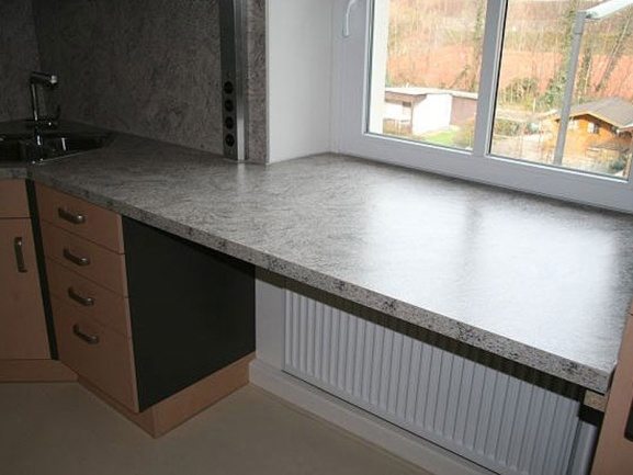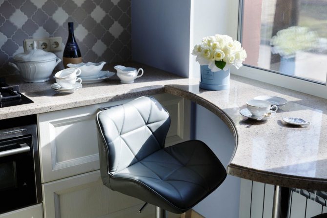 - Une quantité insuffisante de lumière naturelle entrant dans la pièce ou la cuisine, puis un plateau est créé spécifiquement près de la fenêtre, se transformant en douceur dans le rebord de la fenêtre.
