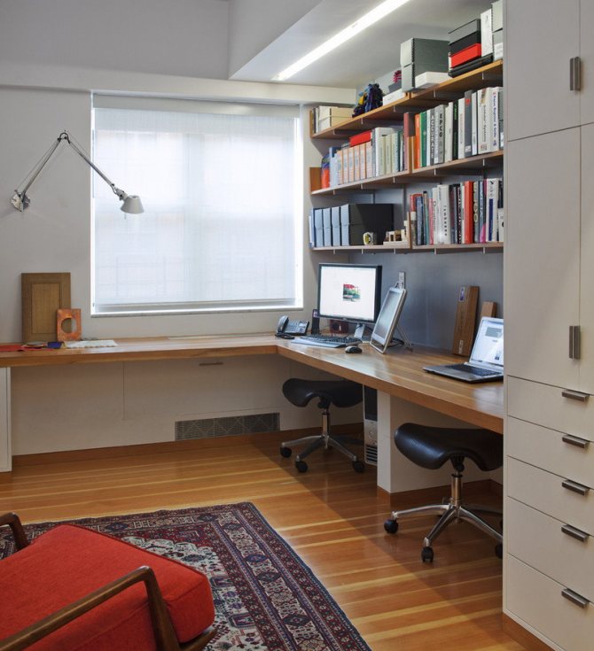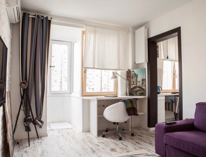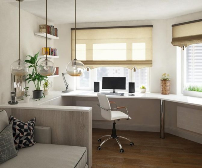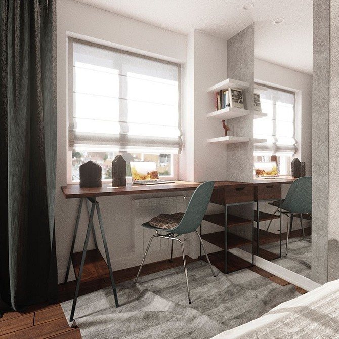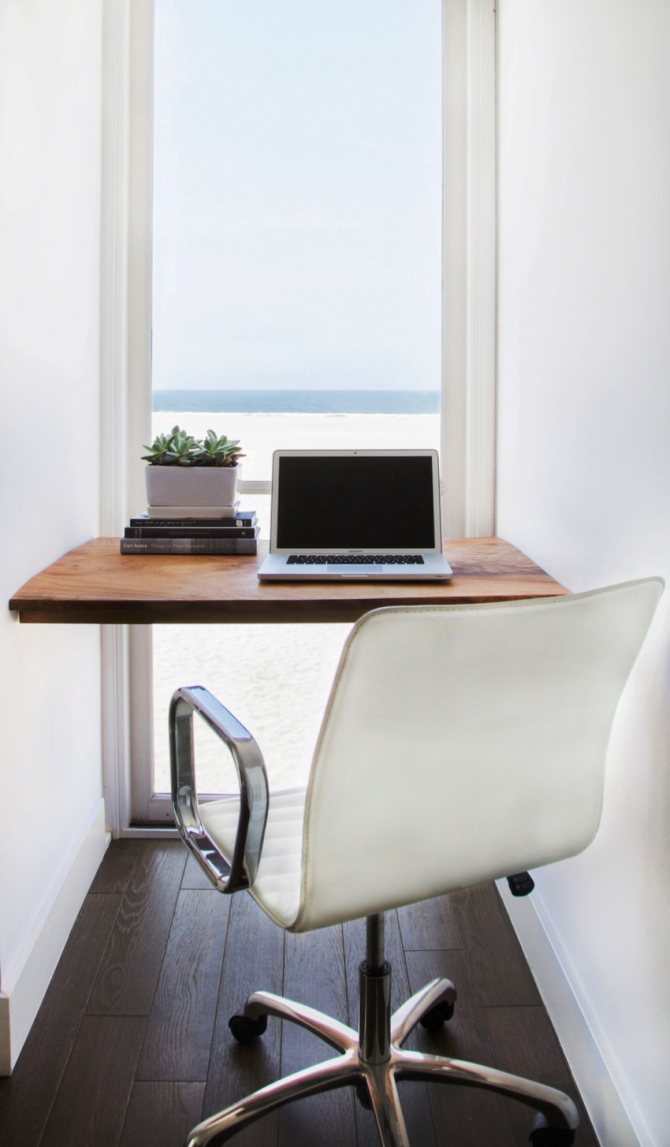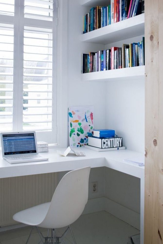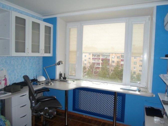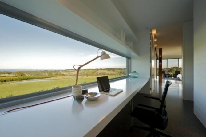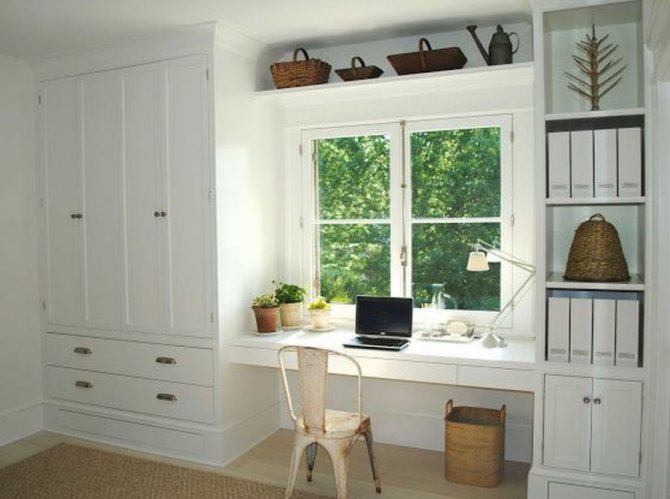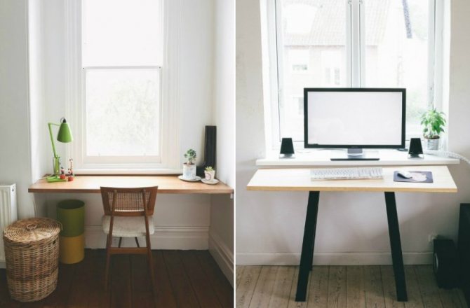 C'est également la seule solution pour une petite pièce, car une variété d'objets ou une étagère en forme de petite étagère peuvent être facilement placées sur une plate-forme supplémentaire.... Pour atteindre ces objectifs, un plateau en bois, qui va bien avec un bureau, convient tout à fait. Le détail peut être adjacent au rebord de la fenêtre ou une sorte de marche est faite lorsque le rebord de la fenêtre est au-dessous ou au-dessus du niveau du plateau de table. L'élément de transition doit être fixé à la jonction avec le rebord de la fenêtre.