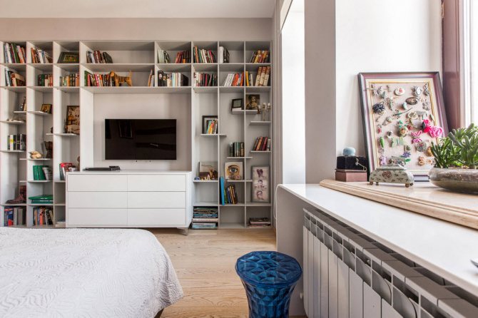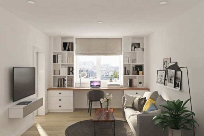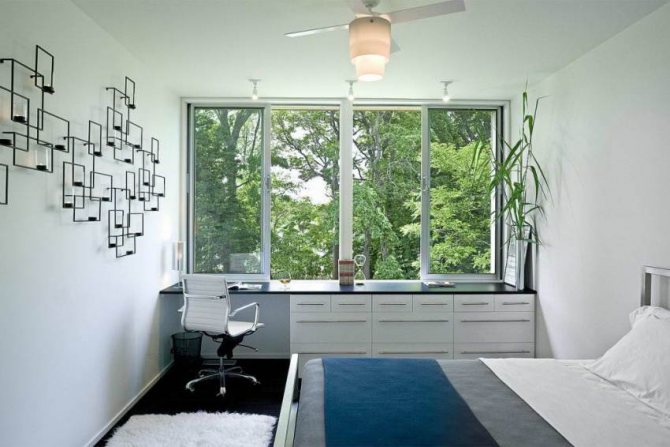- En installant un plan de travail dans la chambre sur un rebord de fenêtre, ce dernier peut être transformé en tête de lit avec une étagère. Elle peut également servir de buffet ou de commode.Si vous placez une cheminée en dessous dans le salon, l'atmosphère deviendra plus confortable et chaleureuse. Ces deux options sont possibles lorsqu'il n'y a pas de radiateur de chauffage sous la fenêtre.
