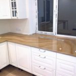 Une alternative à la pierre naturelle est un analogue artificiel, pour la fabrication duquel des matériaux spéciaux sont utilisés. Avec un comptoir en pierre artificielle, vous ne pouvez pas avoir peur de provoquer toutes sortes de dommages mécaniques, du liquide renversé à la surface (thé, café, vin), vous pouvez mettre des plats chauds. Malgré le prix élevé par rapport aux autres matériaux, il est possible de choisir une option plus abordable.