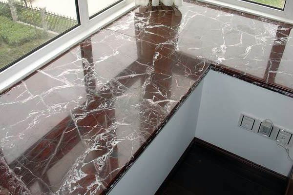 Lors du choix d'un matériau, il faut partir des caractéristiques d'une pièce donnée. En termes de performances, le plastique est le mieux adapté, y compris avec un revêtement acrylique, ainsi que la pierre artificielle. L'utilisation d'un analogue en bois de hêtre, chêne, frêne, cerisier n'est pas exclue. Un tel rebord de fenêtre de table s'intègre bien à l'intérieur s'il n'y a pas de fenêtre et de porte donnant sur le balcon, mais il a été installé à la place d'un rebord de fenêtre dans la pièce. Dans ce cas, il doit être en harmonie avec la solution de conception de la pièce et du balcon.