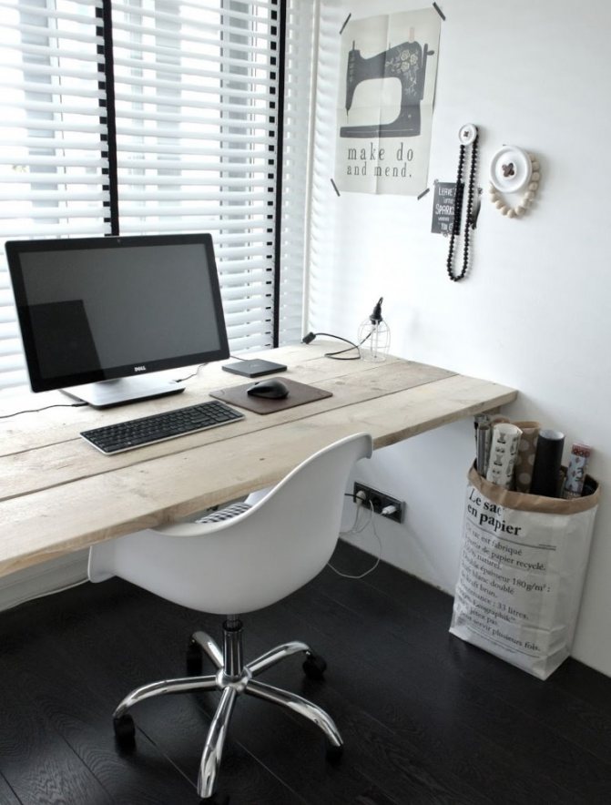 - Le comptoir sur le rebord de la fenêtre du bureau aura l'air très organique si des étagères ou des supports sont placés des deux côtés de la fenêtre.