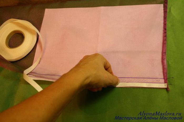 Important: cette méthode de traitement ne convient pas à tous les tissus. Pour que la colle fonctionne, le fer doit être très chaud et non tiède. L'organza ou le tulle fin ne résistent pas au traitement thermique, c'est pourquoi le ruban adhésif ne leur convient pas.