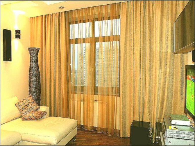Cette option convient à ceux qui ont une double couche de rideaux et en même temps des couleurs contrastées. Cette méthode montre comment raccourcir les rideaux de manière décorative sans les couper. Tout se fait ici de la même manière que dans la méthode précédente. Seuls les rideaux doivent être rentrés pour qu'ils aient l'air gracieux. Autrement dit, tournez-les de 90 degrés.