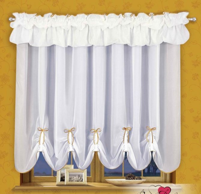 Nous attachons le tissu au milieu avec un nœud soigné, en l'affaiblissant légèrement sur les côtés. Obtenez une robe de fenêtre séduisante.