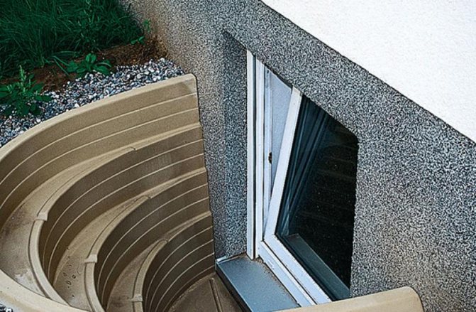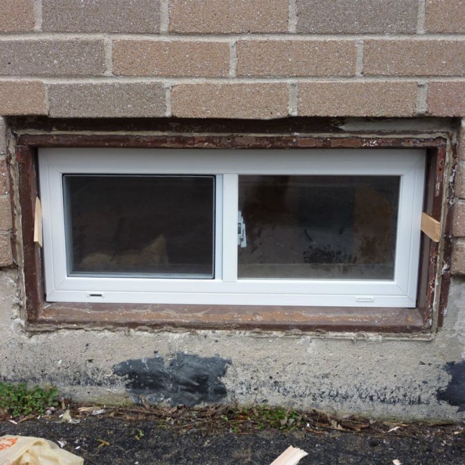 Dans le cas d'un sous-sol, des fenêtres battantes ou battantes en plastique PVC ou en métal d'une hauteur d'environ 500 mm sont généralement installées. Les fenêtres du sous-sol peuvent également être protégées avec des protecteurs de fenêtre métalliques spéciaux.