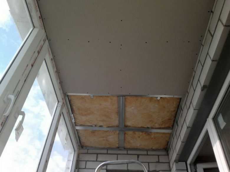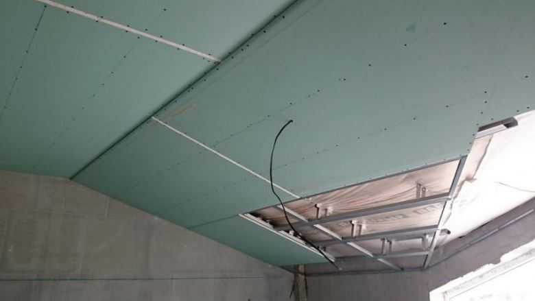 Pour finir la surface du plafond avec ce matériau, il est préférable d'utiliser des plaques de plâtre résistantes à l'humidité. Ils se distinguent par le vert, et moins souvent le bleu, et sont marqués. Il s'agit de l'option de plafond loggia la plus budgétaire.