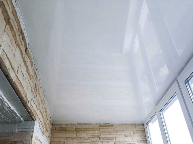 Les professionnels peuvent facilement monter un plafond tendu sur un balcon. Cette façon de décorer le plafond vous permettra de masquer la surface inégale et toute isolation.