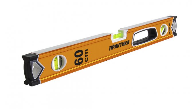 Sur une note! En cours de fixation, le niveau est surveillé: tous les éléments sont alignés de manière à être dans le même plan.