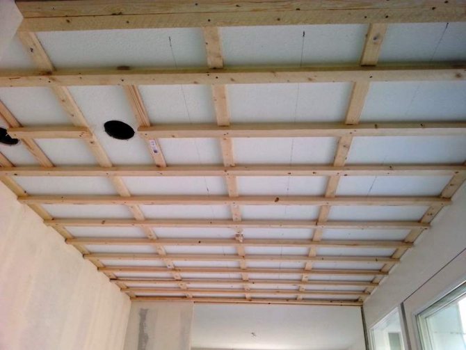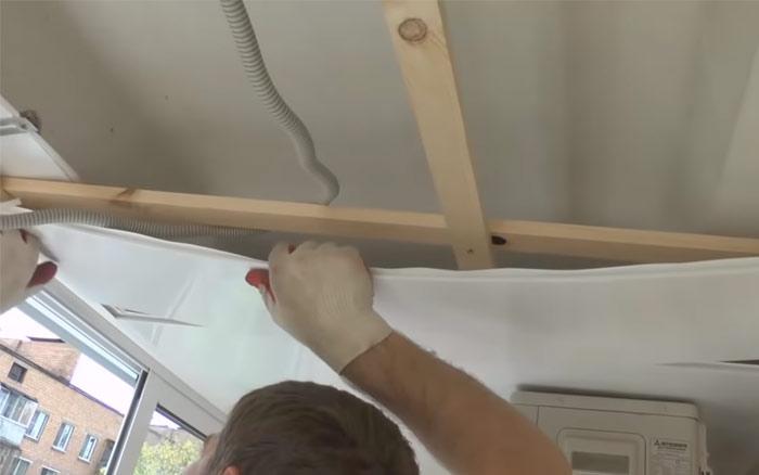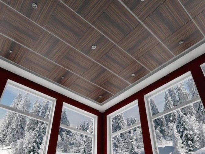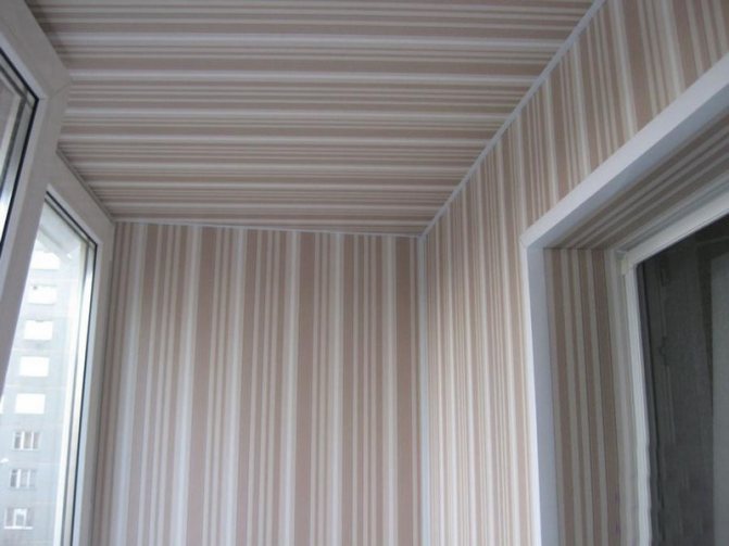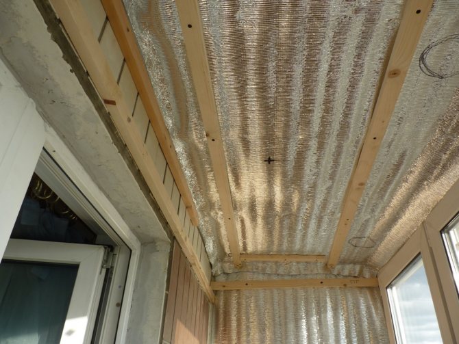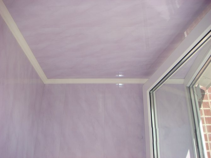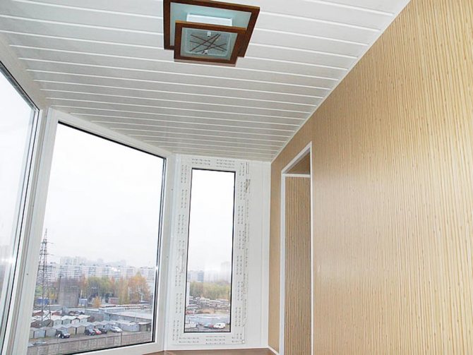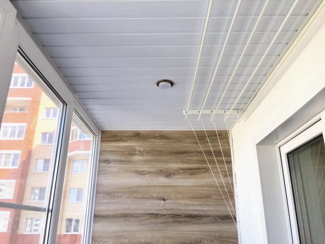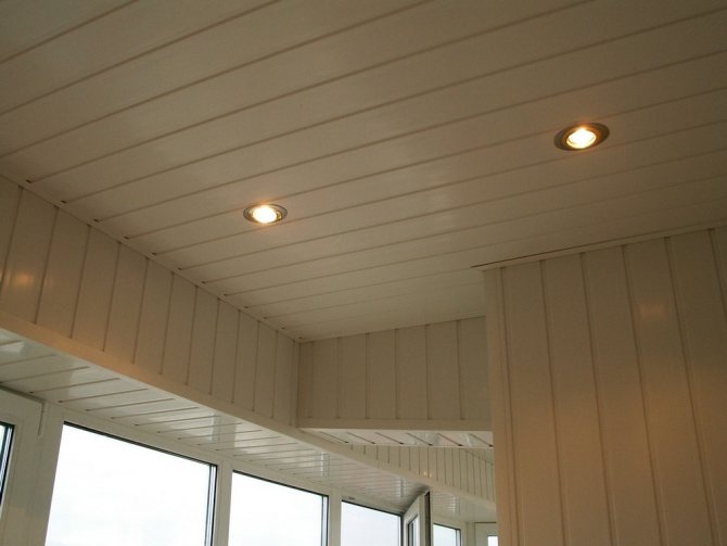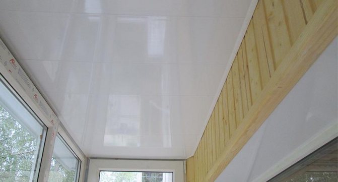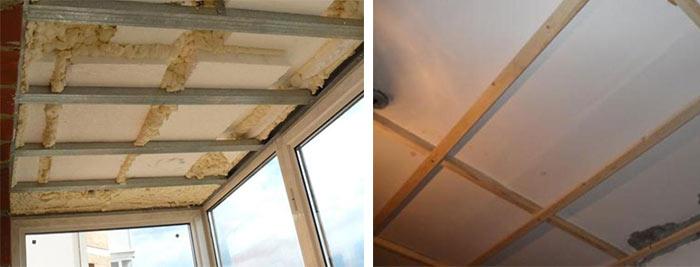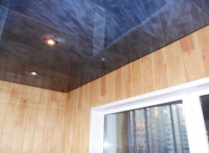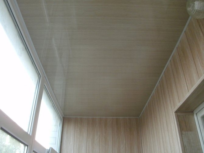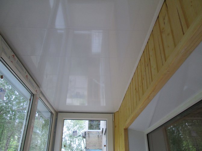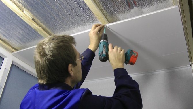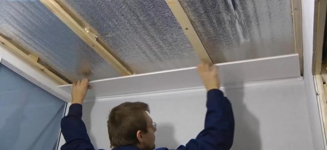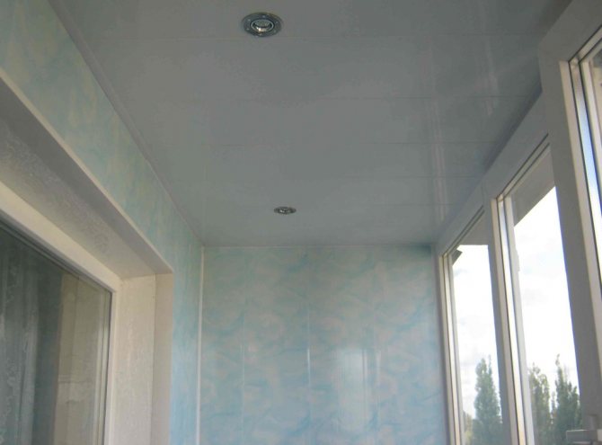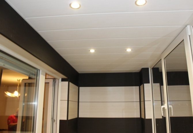 Souvent, sur le balcon, il est nécessaire d'isoler le plafond, et dans ce cas, un revêtement de panneaux en plastique peut également aider.Étant une structure suspendue, cette conception vous permet de placer une couche de matériau isolant dans l'espace du plafond.