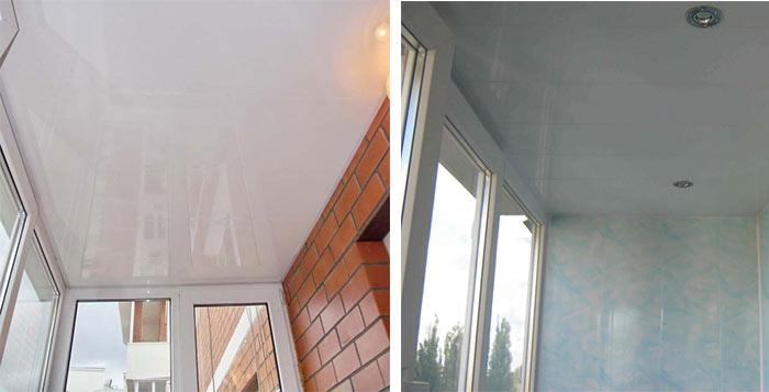 La surface des panneaux en polychlorure de vinyle peut être mate ou brillante. La première option convient pour un balcon: lorsque le rétroéclairage est activé, ces panneaux ne donnent pas d'éblouissement. Lors du choix, tenez compte de l'épaisseur et de la largeur. Des produits trop minces se déforment pendant le fonctionnement et, par temps froid, de la condensation et de la glace se forment dessus.