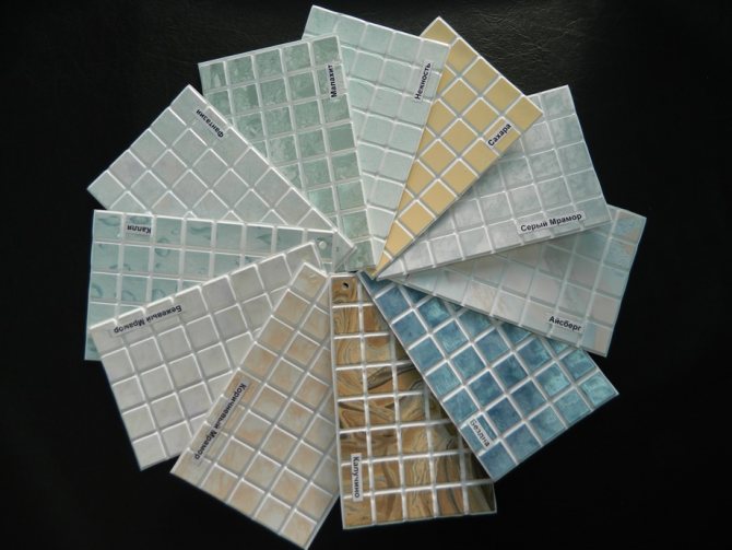 - "Mosaïque". La différence avec la version précédente réside dans la taille. Les paramètres standard des produits sont 955 × 480 × 4 mm. Fixation - sur des vis autotaraudeuses ou des clous liquides.