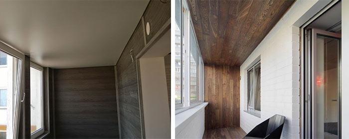 Si le balcon n'est pas isolé, la largeur compte également: les dalles étroites résistent mieux aux changements de température. Les matériaux en feuille ne conviennent pas aux balcons où le plafond a une configuration complexe ou des défauts, car ils n'éliminent pas les défauts.