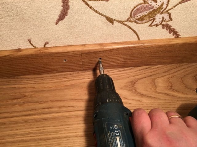 | De plus, dans les trous percés dans le socle, il est nécessaire d'appâter des vis autotaraudeuses, de sorte que leurs extrémités sortent de l'autre côté de 5 7 mm. Après cela, le socle est installé à sa place contre le mur, tandis que les extrémités saillantes des vis autotaraudeuses doivent entrer dans les trous des chevilles. Maintenant, chacune des vis autotaraudeuses est vissée séquentiellement dans le mur jusqu'à ce qu'elle s'arrête. Dans le même temps, le capuchon doit "s'enfoncer" dans la douille préalablement réalisée par le fraisage. | |