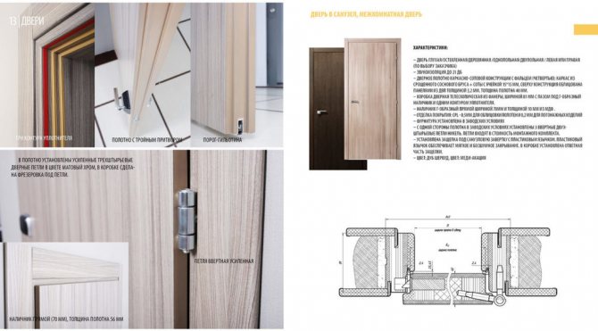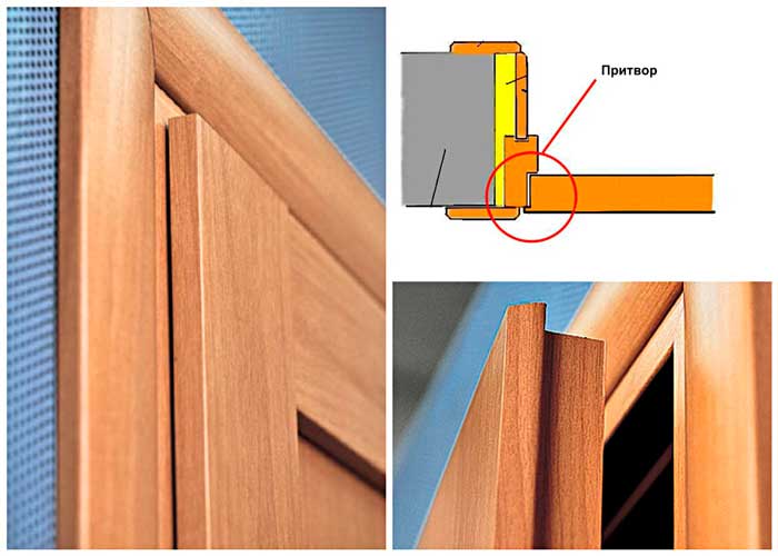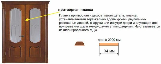 Chez les acheteurs, la définition de «porte à rabais» est errante. Cela est dû aux nuances de la production, car pour la fabrication du pontage dans la toile, le contour du pli est découpé avec un moulin. Le narthex est une continuation du vantail de porte, qui est en contact avec des parties du cadre.