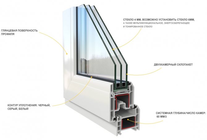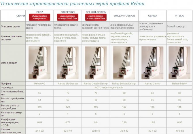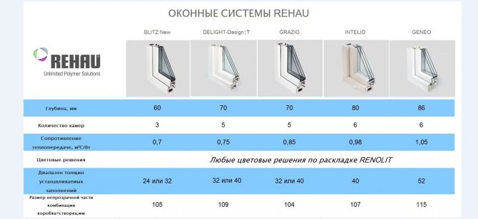 Les avantages des fenêtres REHAU sont mieux vus sur l'exemple de la série la plus populaire - Rehau Basic-Design. Ce modèle a les paramètres suivants :