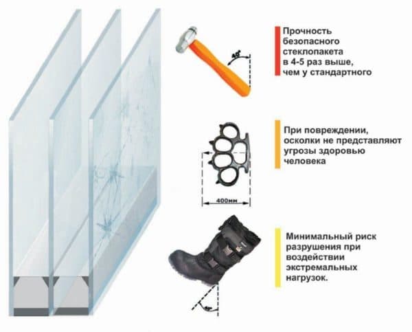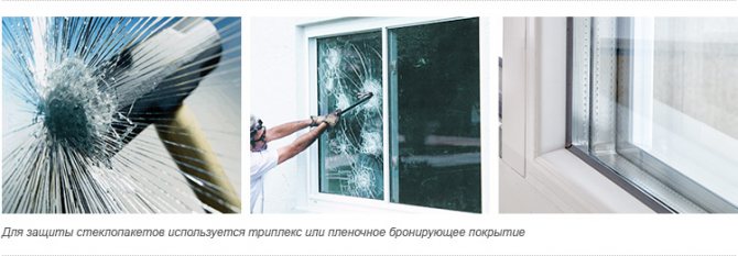 Dans la construction d'une unité de verre anti-effraction, le verre extérieur est fabriqué à l'aide de la technologie triplex - lorsque deux verres sont collés ensemble avec un film polymère. Une telle unité de verre dans certaines modifications résistera non seulement à un coup, mais même à un coup de feu.
