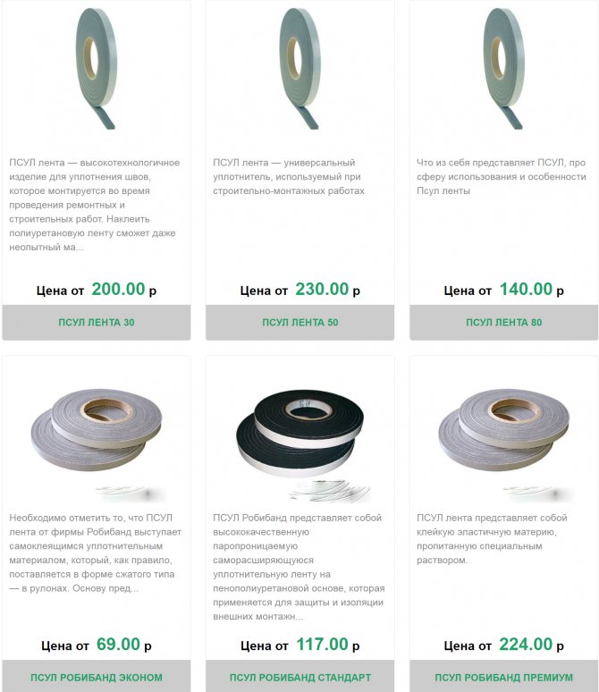 Le ruban d'étanchéité est fait de mousse de polyuréthane spéciale (caoutchouc mousse), qui est imprégnée d'acrylique modifié perméable à la vapeur pour donner au mastic les propriétés nécessaires. Quelques temps après le collage, le PSUL se dilate, remplissant complètement les joints de montage. Contrairement à d'autres types de joints, le ruban pré-compressé permet de combler même les coutures légèrement irrégulières. La taille de la bande reste inchangée jusqu'à ce qu'elle soit déroulée et retirée du support adhésif.