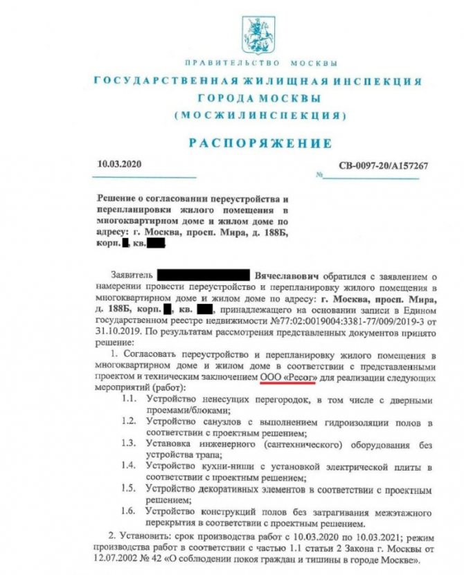 - Projet de réaménagement et un certain nombre d'autres documents dont la liste doit être clarifiée dans l'inspection du logement du district.