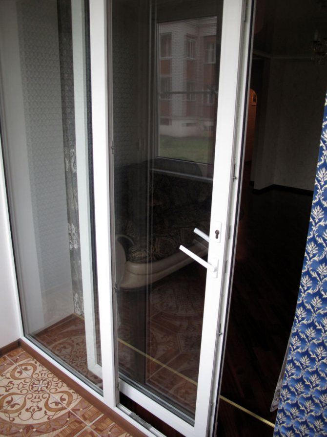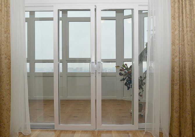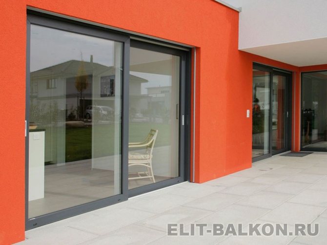 Portes coulissantes menant au balconSi la disposition vous permet d'agrandir considérablement la taille de la structure, il est nécessaire d'installer des portes levantes et coulissantes. Ils fonctionnent sur des rails métalliques montés au sol et au plafond. Lorsque vous tournez la poignée de la porte, elle se lève et glisse. Une telle conception encastrée confère au système une fiabilité supplémentaire, car un vantail jusqu'à 2,5 mètres de large pèse beaucoup. |