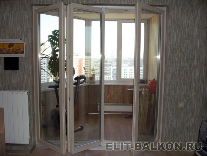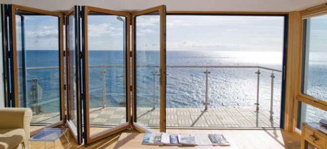 - Une porte accordéon convient à un appartement spacieux. La taille de la loggia doit également être appropriée, sinon la conception aura l'air encombrante.