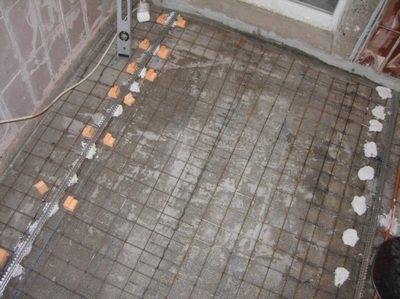 L'installation d'un treillis d'armature est nécessaire lorsque la plaque de base est gravement endommagée. Dans ce cas, ses fonctions de roulement seront affaiblies. Pour fabriquer un tel maillage, vous devez préparer un fil d'acier d'une section de 5 mm. Avant de le poser, nettoyez bien la base. Il est préférable d'assembler le maillage lui-même à l'extérieur du balcon, ce sera donc plus pratique. Lors de la pose, faites attention aux espaces qui en résultent, ils sont nécessaires pour que le béton s'écoule sous la tige. Le béton est coulé en fonction du diamètre de l'armature. Son montant devrait le couvrir complètement.