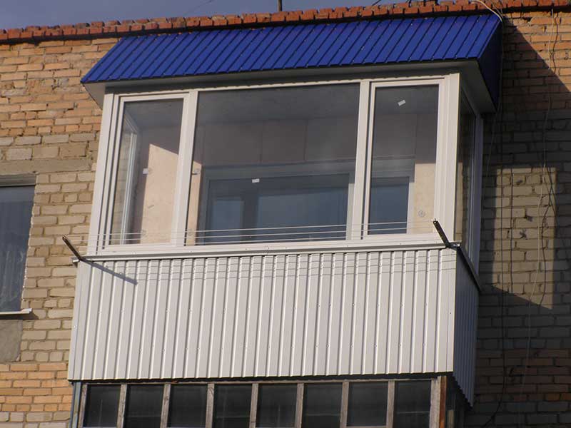 Lorsque le cadre d'extension du balcon est prêt, vous pouvez procéder à d'autres travaux d'installation. La première étape consiste à assembler les fermes de toit et à les monter. Comme revêtement de sol pour un balcon, vous pouvez utiliser du métal ou du carton ondulé. L'angle d'inclinaison du toit doit être tel que la neige ne s'accumule pas en hiver. Ensuite, le revêtement extérieur du balcon est effectué. La façon la plus simple de le faire est d'utiliser un revêtement en métal ou en PVC. Pour pouvoir le réparer, vous devrez installer un cadre séparé d'un profilé destiné au bardage. Un berceau peut être nécessaire pour effectuer ce travail.