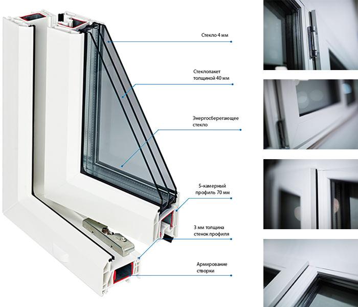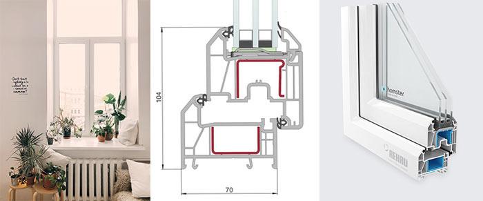 euro- Euro-Design 60 - le même que le modèle précédent, mais non extensible et légèrement amélioré. Il y a encore trois chambres, la profondeur standard est de 60 mm, mais elle peut être augmentée à 70 (il y aura cinq chambres), le nombre de circuits d'étanchéité est augmenté à 2, ce qui augmente le taux de stockage de chaleur à 0,65 m2 ° C / W. Conçu pour le vitrage des appartements, des bureaux dans les zones à climat tempéré.