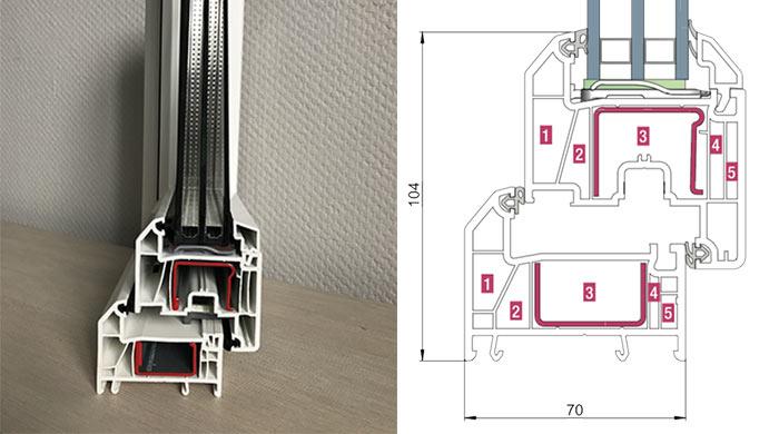 L'une des principales différences entre les profils Rehau est leur chambre, c'est-à-dire le nombre d'espaces internes remplis d'air. Plus il y en a dans la structure, meilleures sont les performances de conservation de la chaleur et de protection contre le bruit.