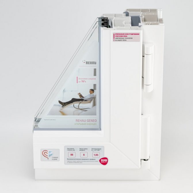 - Le profil à six chambres des meilleurs modèles de la gamme Rehau, appartenant à la classe premium (Intelio, Geneo), offre des économies de chaleur de 0,95 et 1,05 m2 ° C / W et une isolation phonique de 47 dB.