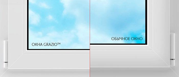 - Les deux modèles ont une hauteur réduite de la structure profilée (ouvrant + cadre) - pour Rehau Delight 109 mm, pour Grazio - 104 mm, ce qui signifie qu'il laisse entrer encore plus de lumière dans la pièce.