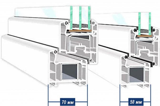 Les fabricants produisent des profilés d'une largeur de 58 à 90 mm. Les systèmes de fenêtres d'une largeur de 58 à 70 mm sont considérés comme les plus courants, ils conviennent à la fourniture normale de chaleur et de silence dans la maison. La largeur 58 mm est typique pour les fenêtres à une chambre avec des fenêtres à double vitrage jusqu'à 32 mm d'épaisseur.