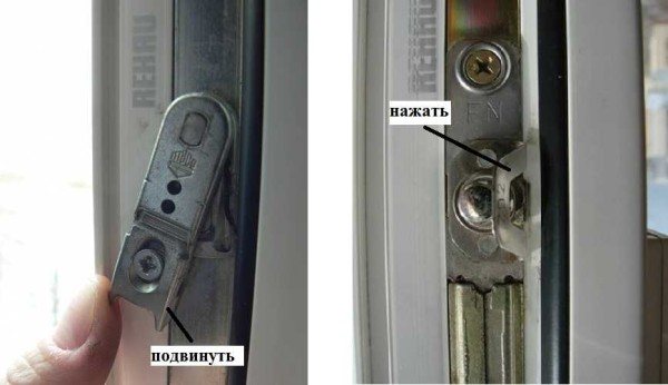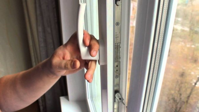 Rien de terrible ne se passe dans ce cas, et il n'est pas nécessaire de remplacer des accessoires ou une poignée, il n'est même pas nécessaire de le retirer. Ce problème se produit en raison d'un fonctionnement incorrect du mécanisme de verrouillage, qui ne permet pas de modifier la position de la fenêtre à l'état ouvert. Pour résoudre le problème, vous devez libérer indépendamment le levier de blocage et relâcher le mouvement de la poignée. Le levier de verrouillage est situé à l'extrémité de l'ouvrant du côté de la poignée. De par sa conception, il existe deux types d'exécution: une plaque en forme de languette (levier), qui, lorsque l'ouvrant est ouvert, est rétractée à un angle par rapport au caoutchouc d'étanchéité et vissée directement à l'extrémité, aussi bien en version sous forme de clip qui s'adapte sur le caoutchouc d'étanchéité.