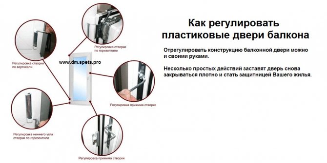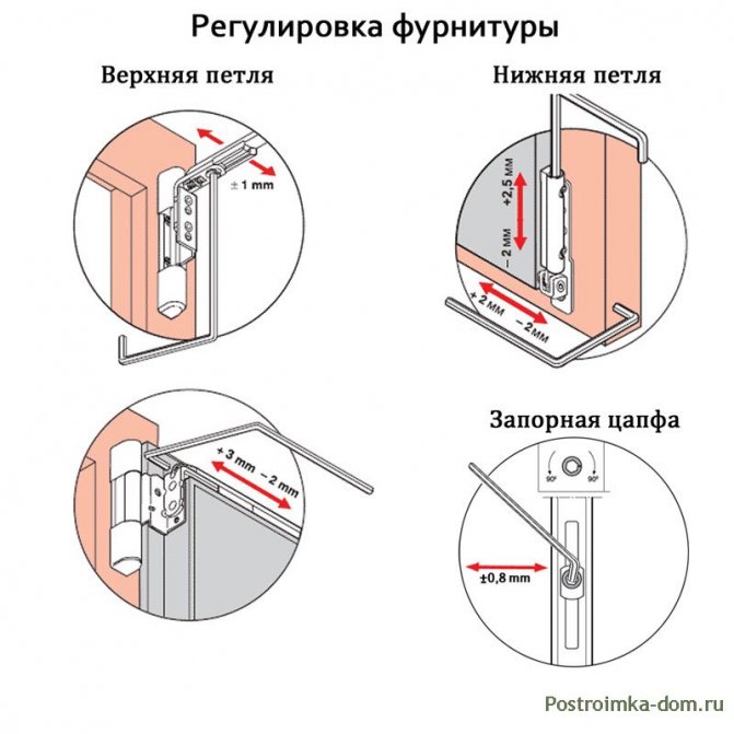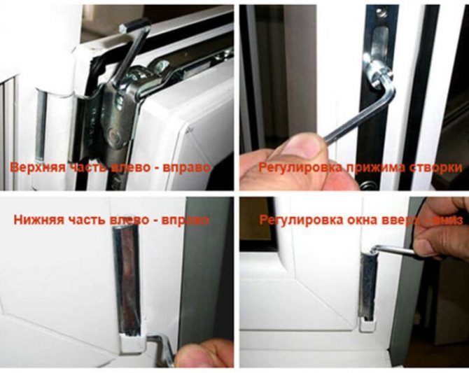 Si la poignée de la fenêtre ne se ferme pas complètement et qu'une violation de la géométrie du châssis de la fenêtre est détectée, il est nécessaire de l'ajuster. La fenêtre peut être ajustée dans trois directions principales:
