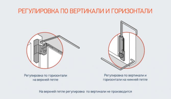 L'ajustement d'un tel système est effectué avec l'aide de professionnels. Sinon, vous aurez besoin d'un tournevis Torx. Le mécanisme est ajusté à deux endroits (charnières supérieures et inférieures). Vérifiez à l'avance les diagonales contre l'affaissement. À partir de l'élément inférieur, l'indicateur doit être plus long (0-3 mm) qu'à partir de la boucle supérieure.