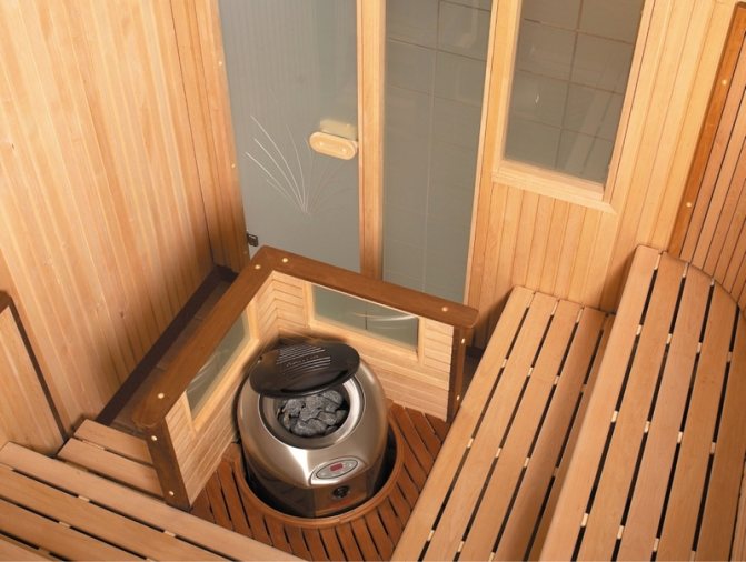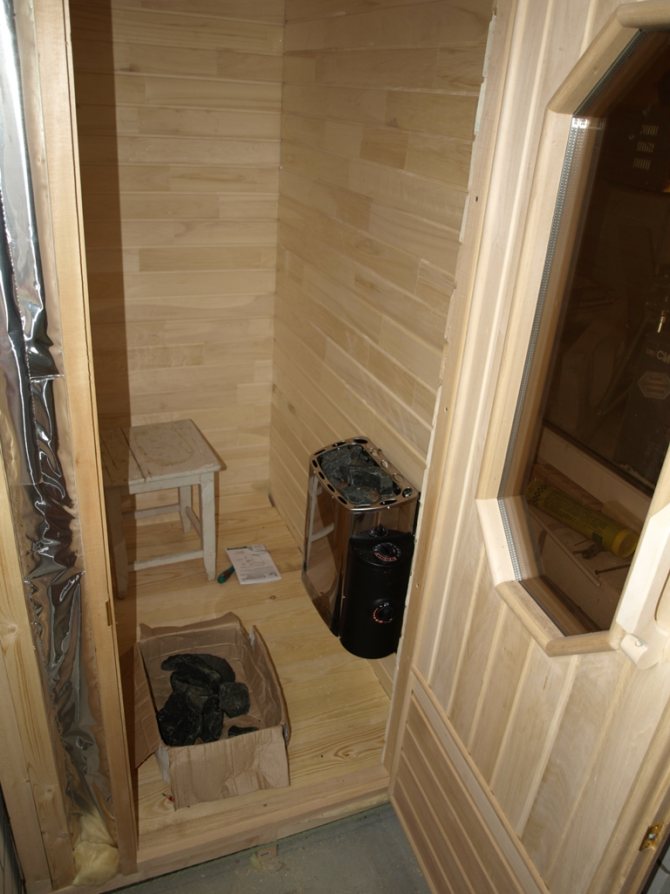 Une fois tous les travaux de finition terminés, placez le poêle. Les experts recommandent d'installer des radiateurs électriques spécialement conçus pour les mini saunas. Ils sont abordables, sûrs et conçus pour les petits espaces. Achetez-le dans un magasin spécialisé. Les articles de chauffage faits maison coûteront un peu moins cher, mais personne ne peut garantir leur fonctionnement ininterrompu et sûr.