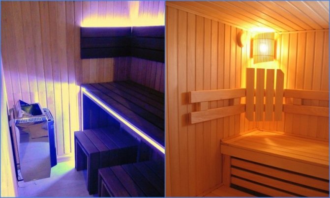 À l'intérieur du sauna lui-même, il est permis d'installer uniquement des lampes étanches. Le joint entre la base et l'abat-jour est en silicone résistant à la chaleur et non en caoutchouc (il peut s'effriter sous l'influence de températures élevées). Le degré de protection du luminaire est IP54. À l'extérieur du sauna, il y a des prises et un interrupteur.