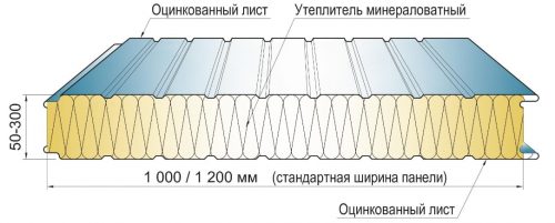 Conseils! Lors du choix des panneaux sandwich, vous devez faire attention au fait qu'ils diffèrent par leur épaisseur, dont dépendent directement leurs caractéristiques d'isolation thermique et leur capacité portante.