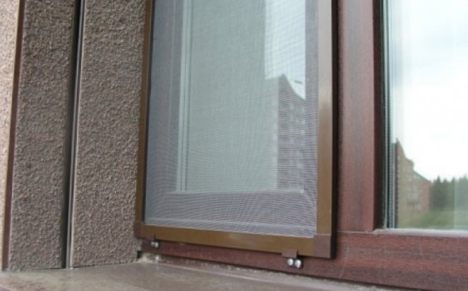 - fixation fiable. La clôture est fixée sur le cadre de la fenêtre avec un système stable, qui se compose de plusieurs types de fixation;