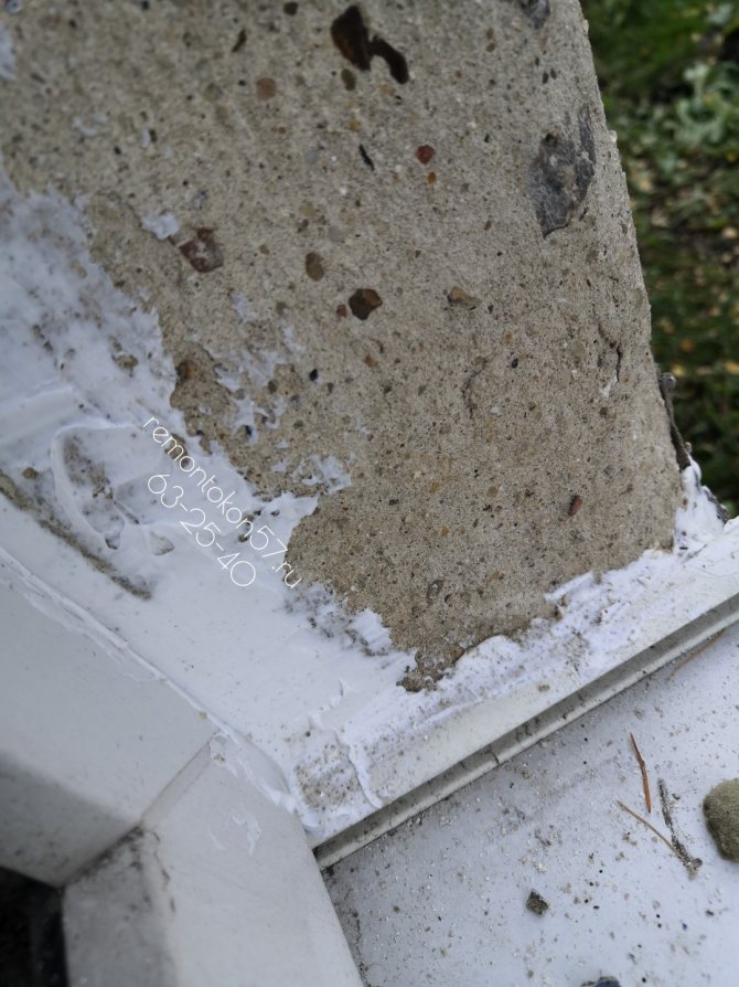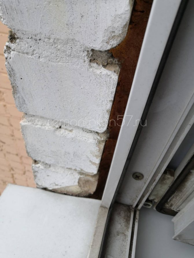À l'extérieur, aux endroits où le cadre jouxte le mur de la maison, après l'installation, il y a souvent des fissures visibles qui ne sont pas fermées par des pentes. Ils doivent également être éliminés afin que l'humidité et la poussière ne pénètrent pas à l'intérieur et n'endommagent pas le joint en mousse. Ce travail doit être effectué de manière préventive, même si aucun courant d'air n'est observé.