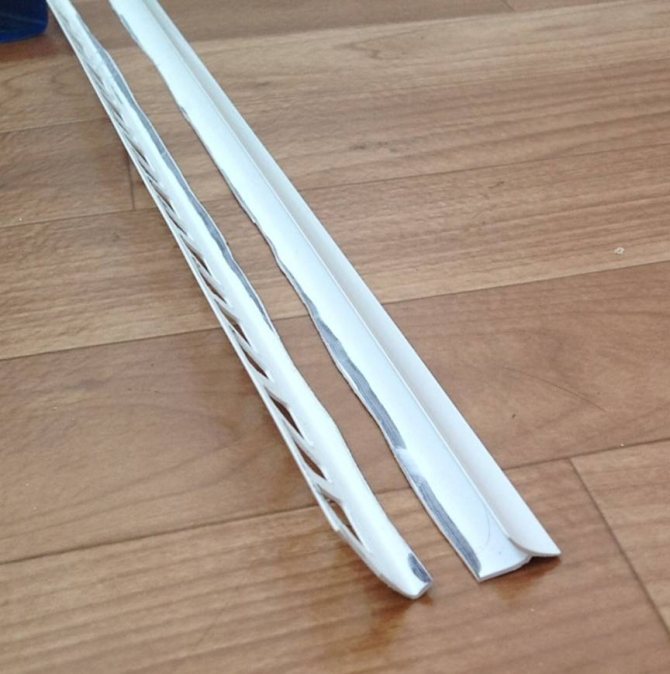 - Nous commençons à nettoyer la gouttière et le profil de remplacement. Nous prenons un tournevis et choisissons la vieille mousse brune. Il est assez facile de s'effriter et les restes sont soufflés.