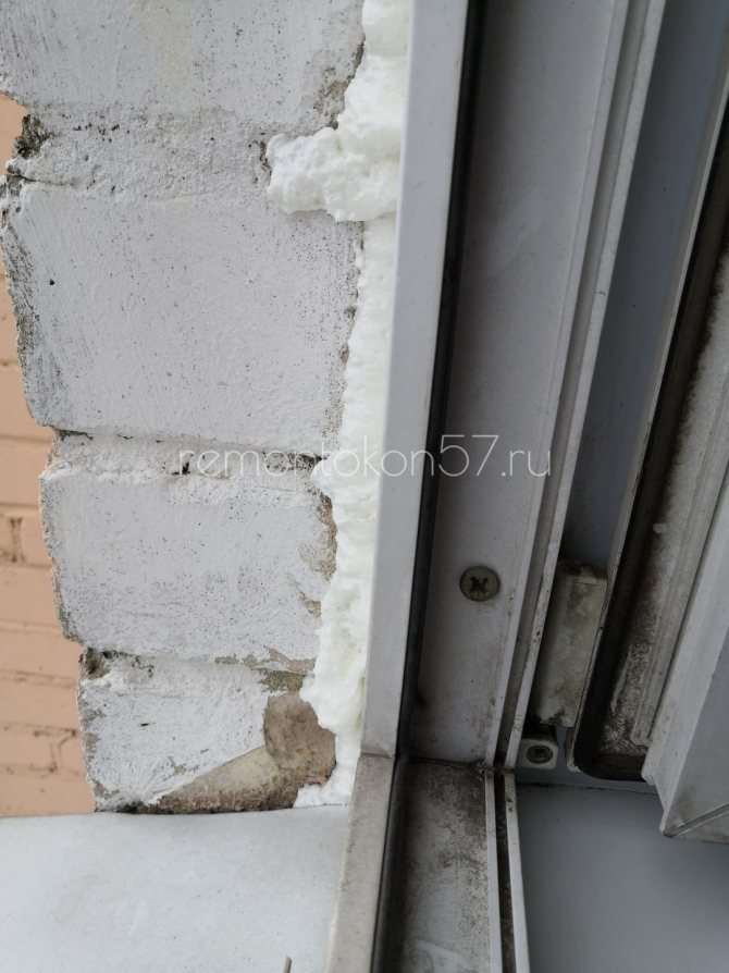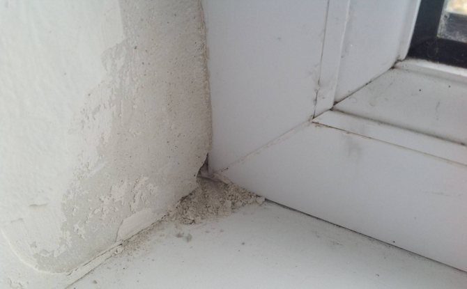 L'espace entre le cadre en PVC et l'ouverture est rempli de mousse de polyuréthane. Cette procédure n'est pas toujours effectuée de manière efficace, généralement en raison de la faute des installateurs, mais parfois pour des raisons objectives, par exemple en raison de la complexité de la conception. Les fissures et les vides qui en résultent deviennent une source de courants d'air, de l'humidité s'y accumule, de la moisissure apparaît et, dans certains cas, des insectes commencent à vivre. Si de tels défauts sont détectés, ils doivent être éliminés immédiatement.