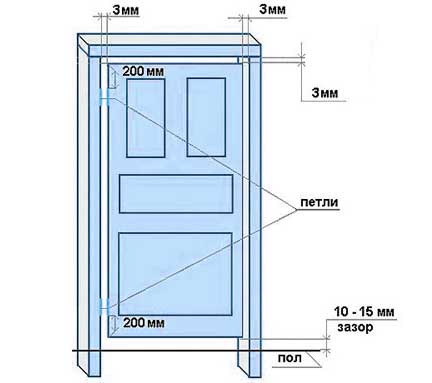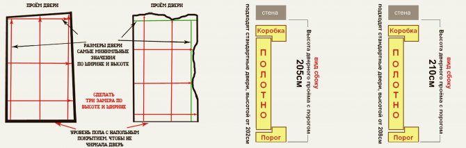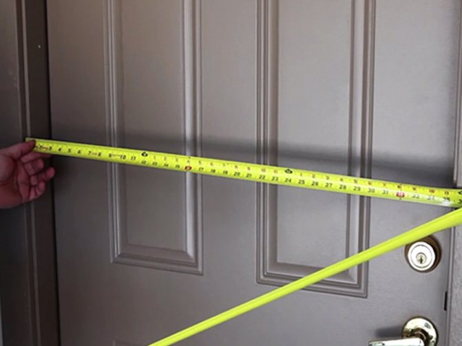 Ensuite, les mesures de la porte sont effectuées, la taille de l'espace entre la porte et le cadre de la porte, ainsi qu'entre la toile et le cadre, est soustraite du chiffre obtenu. Les mesures d'ouverture sont multipliées par deux. Ce sera la largeur de la structure de la porte.