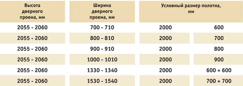 Ces tailles conviennent à l'installation et à la vie confortable de tous les membres de la famille. En règle générale, la hauteur de l'ouverture dans les structures préparées est exactement de 2 mètres. Mais vous pouvez jouer avec la largeur, en la faisant varier au besoin selon vos préférences.
