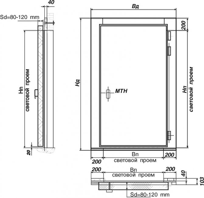 Lorsque l'ancien kit a déjà été démonté et qu'il n'est pas possible de calculer ses dimensions, lors du choix d'un bloc de porte, il faut partir des dimensions de l'ouverture existante. De plus, de sa largeur, il faut soustraire au moins 70 mm et de la hauteur (si le seuil n'est pas prévu) environ 50 mm.