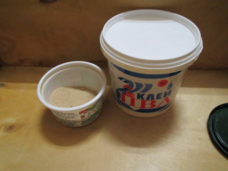 Mélangez les ingrédients indiqués du nom de la recette dans des proportions égales. Ajoutez une petite quantité d'eau ou de colle PVA. Le résultat devrait être une masse visqueuse qui peut garder sa forme.