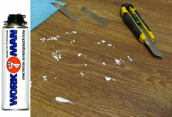 Après avoir utilisé de la mousse professionnelle, nettoyez le pistolet à l'intérieur et à l'extérieur. Pour cela, avec le pistolet, un liquide de rinçage spécial est acheté. Le reste de la mousse sur les mains est lavé avec un solvant. Il est préférable d'éliminer immédiatement les résidus de mousse des surfaces avec une éponge trempée dans du solvant ou de l'acétone. Si la mousse a déjà durci, elle est éliminée mécaniquement.