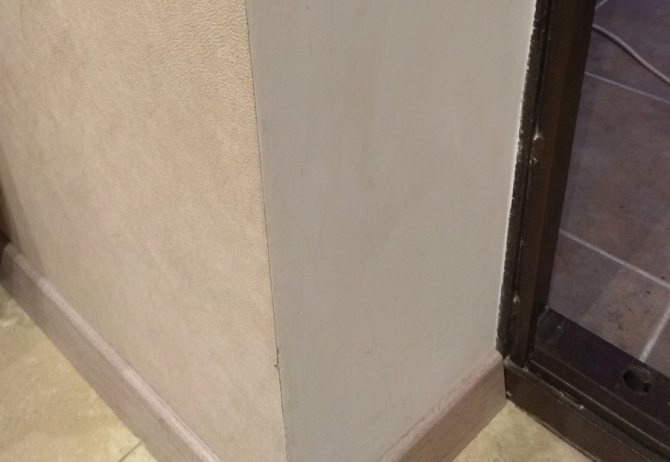 - Une fois qu'ils sont formés, vous devez faire ressortir le coin avec le mur principal. Pour cela, deux flotteurs sont utilisés, l'un d'eux est placé contre le plan du mur principal du bâtiment, et le second est utilisé pour créer une pente avec un bel angle régulier. Il est recommandé de marquer d'abord la ligne d'angle à l'aide d'un fil à plomb afin qu'elle ne se révèle pas submergée. Pour cela, la solution de plâtre doit être moyennement épaisse, de sorte que l'angle requis puisse être librement formé, et après la truelle, la couche appliquée n'a pas immédiatement flotté, mais a commencé à prendre.