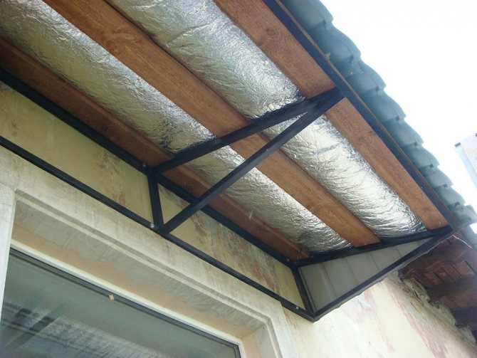 - la visière est suspendue au-dessus du balcon, c'est sur cette partie de celui-ci que la pluie et la neige tombant du toit reçoivent, par conséquent, le matériau du rouleau y est collé par le bas, juste à côté du cadre de vitrage