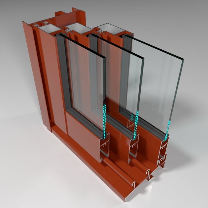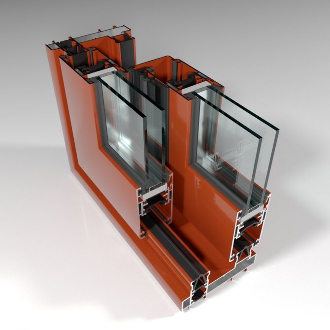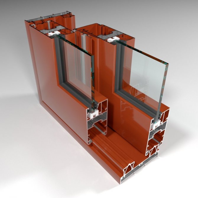 La structure du produit est un cadre rectangulaire de 60 mm d'épaisseur avec deux guides sur les échelons supérieur et inférieur. Les châssis se déplacent le long des guides à l'aide de rouleaux dont les joints sont isolés par un joint à brosse. La conception des supports à rouleaux vous permet d'ajuster la hauteur de l'ouvrant. Des limiteurs spéciaux pour le mouvement ascendant de l'ouvrant excluent la possibilité de chute de l'ouvrant lors de rafales de vent, en cas de formation accidentelle de glace sur les patins. Le système de trous de drainage dans les traverses protège la structure des infiltrations d'eau.